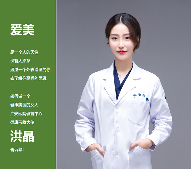 作為健管中心的健康形象大使,洪晶已經(jīng)把健康與美麗,演繹成了一種精致的生活與品味。她認(rèn)為:“精致、美麗、健康”是女人的追求,而廣安醫(yī)院能為女性客戶提供“健康+美麗”的整體解決方案,從健康評(píng)估、個(gè)性化體檢、中醫(yī)滋補(bǔ)調(diào)養(yǎng),到整形美容,一站式解決女性對(duì)健康和美麗的追求。