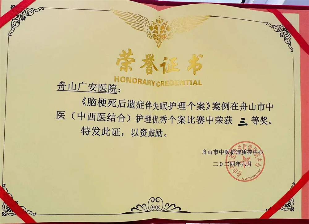 我院一例《腦梗死后遺癥伴失眠》患者的個案護理在比賽中榮獲三等獎,這是一次充滿挑戰(zhàn)的歷程,也是一次展現(xiàn)我院護理人員專業(yè)素養(yǎng)和人文關(guān)懷的絕佳機會。