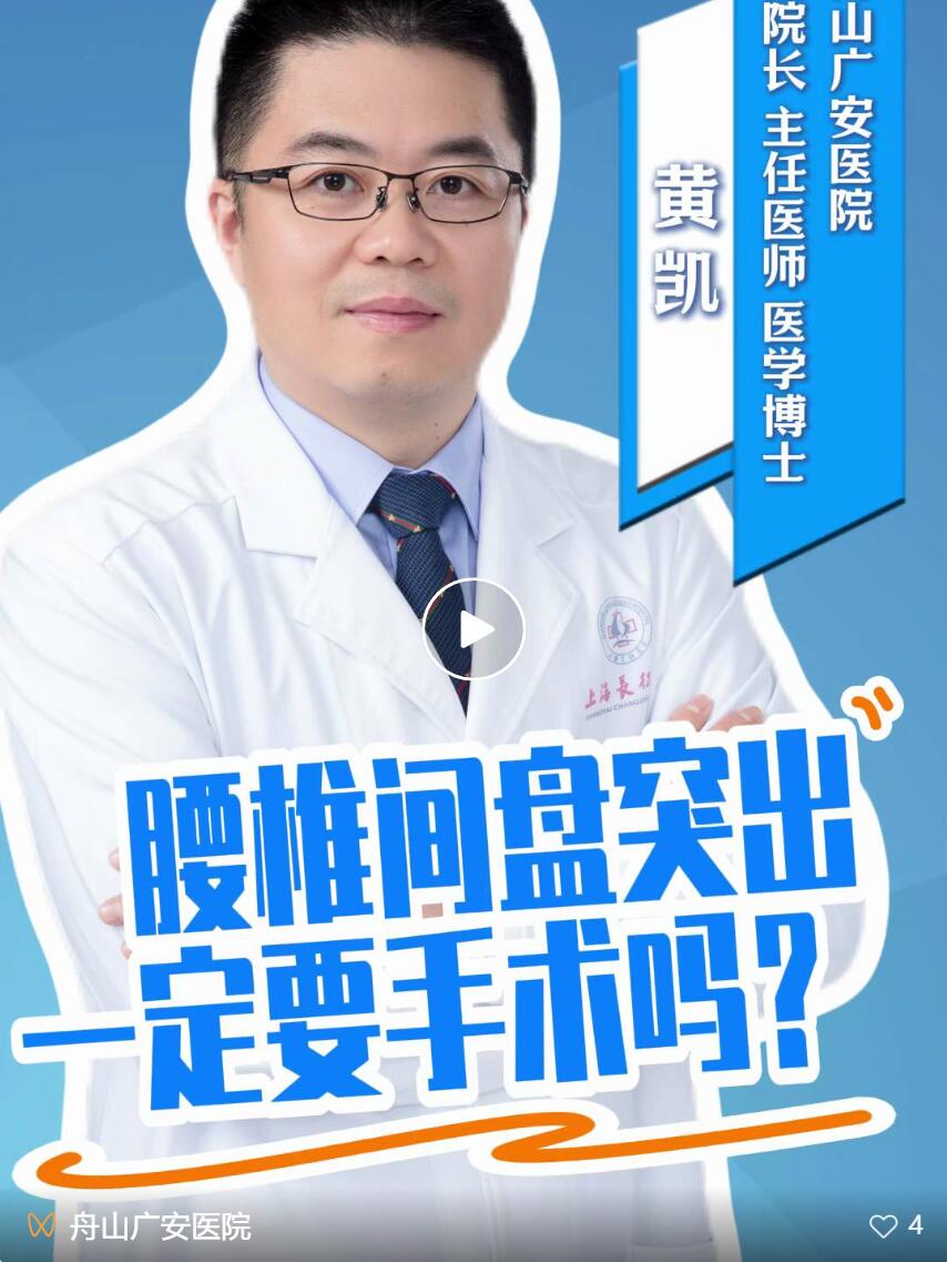 那么,腰椎間盤突出一定要手術(shù)嗎?我們來聽聽我院副院長(zhǎng)黃凱醫(yī)師的怎么說!