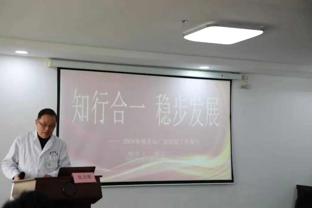 2025年1月11日,舟山廣安醫(yī)院順利召開(kāi)2024年度年終總結(jié)大會(huì),70余位管理人員和科室骨干齊聚一堂,共同回顧過(guò)去一年的工作成果,展望未來(lái)的發(fā)展方向。此次大會(huì)由副院長(zhǎng)鐘琦靜主持,各科室代表紛紛發(fā)言,總結(jié)經(jīng)驗(yàn),分享成果,為醫(yī)院的發(fā)展貢獻(xiàn)力量。