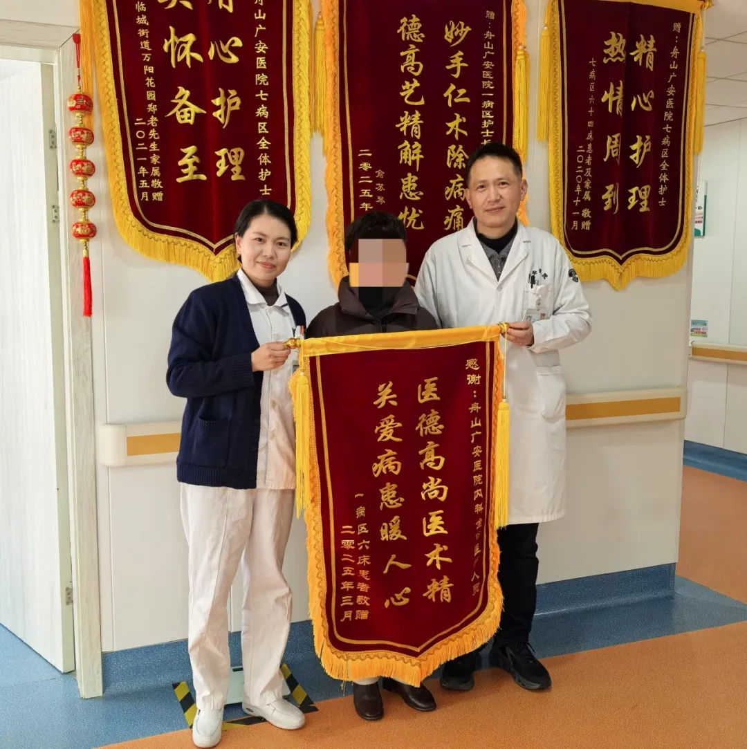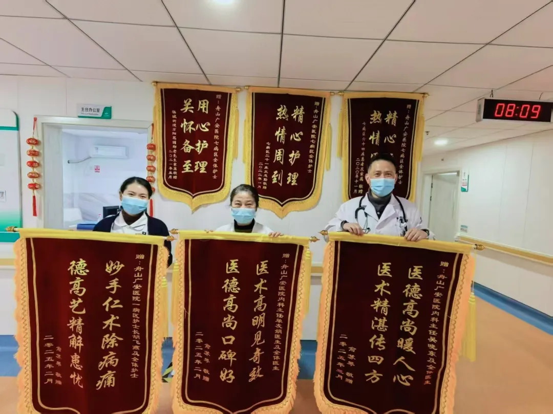 在內(nèi)科病區(qū)里,懸掛著眾多錦旗,總在無聲訴說著醫(yī)患間的溫情故事。近日,兩位與病魔抗?fàn)幎嗄甑睦先耍眉t綢金字的錦旗,為這個(gè)充滿愛心的醫(yī)療團(tuán)隊(duì)寫下最誠摯的注腳。