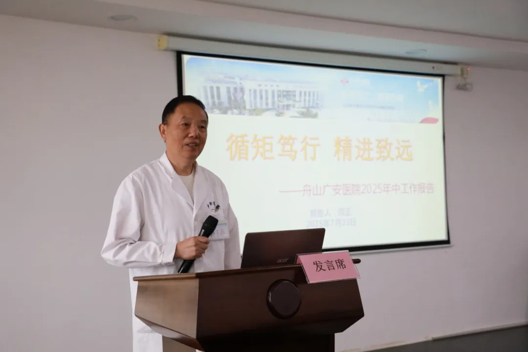 7月23日,舟山廣安醫(yī)院2025年年中工作會(huì)議順利召開。本次會(huì)議以“循矩篤行 精進(jìn)致遠(yuǎn)”為主題,全面總結(jié)上半年工作成效,分析存在問題,并部署下半年重點(diǎn)工作任務(wù)。院領(lǐng)導(dǎo)班子、各科室負(fù)責(zé)人及科室骨干人員參加了會(huì)議。