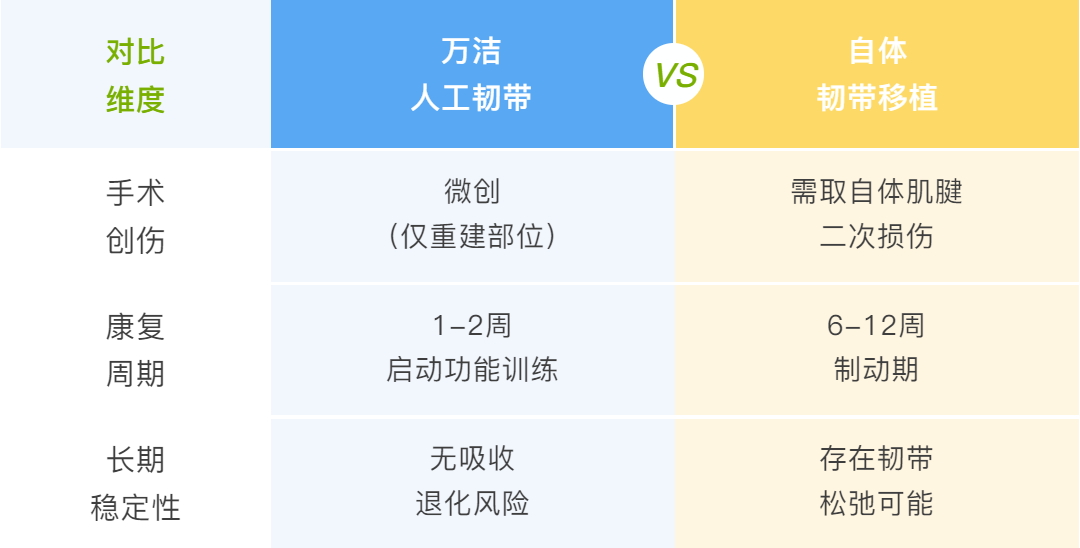 舟山廣安醫(yī)院副院長羅軍副教授表示:"萬潔人工韌帶的生物活性設計解決了傳統(tǒng)材料‘機械固定不持久’的難題,特別適合年輕運動人群的快速功能重建需求。"