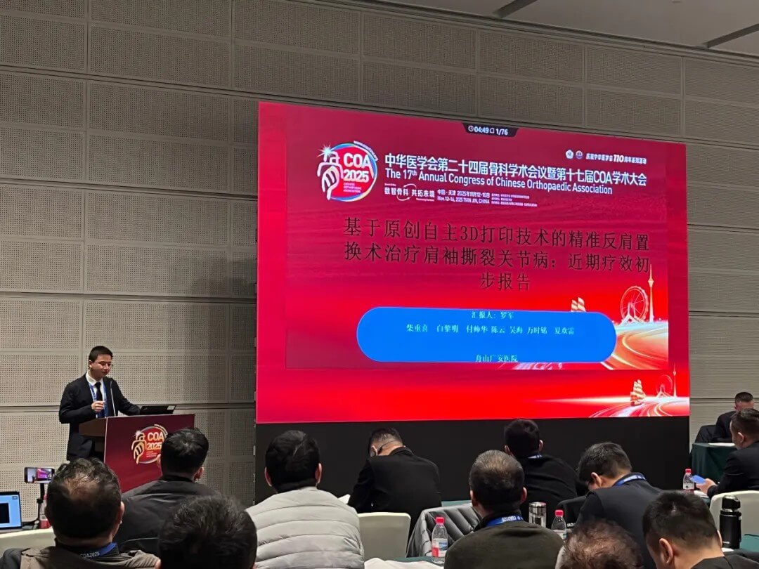 舟山廣安醫(yī)院羅軍副院長(zhǎng)受邀參加此次盛會(huì),并在大會(huì)上作專題發(fā)言。羅軍副院長(zhǎng)展示的骨科3D打印技術(shù)臨床應(yīng)用成果,引起了與會(huì)專家的廣泛關(guān)注和熱烈討論。其創(chuàng)新的技術(shù)路線和扎實(shí)的臨床數(shù)據(jù),獲得了海內(nèi)外專家的高度評(píng)價(jià),展現(xiàn)了我院在骨科技術(shù)創(chuàng)新方面的實(shí)力。