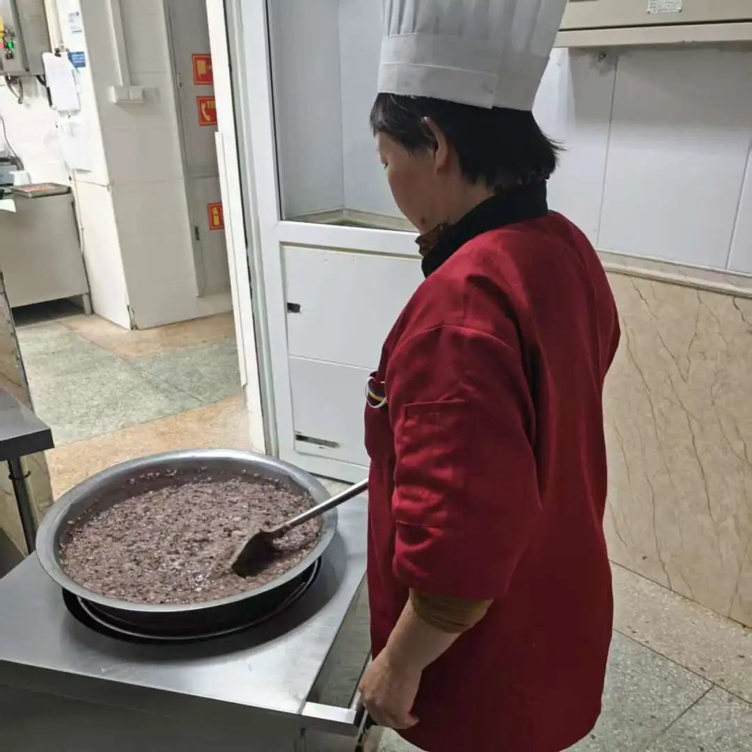 天色未亮,食堂已燈火通明。工作人員精心備好糯米、紅棗、蓮子、桂圓、紅豆等食材,細(xì)心清洗、慢火熬煮。隨著熱氣裊裊升起,軟糯香甜的臘八粥逐漸飄香,也熬進(jìn)了我們對(duì)于健康、平安、團(tuán)圓的美好祈愿。