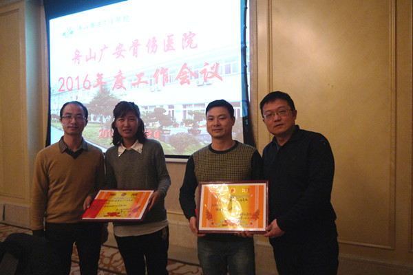 會上郭維杰院長就2015年全院工作作了總結報告。郭院長指出,2015年在各科室的配合下,緊緊圍繞年初工作計劃和要求,不斷強化管理,提高自身管理水平,加強工作能力及溝通能力;努力提高醫(yī)療技術水平,加強人才隊伍的建設,形成了積極上進,講技術講學習的氛圍;加強科技興醫(yī),努力提高醫(yī)療水平。各科室認真工作,團結協(xié)作,保證了全院各項醫(yī)療工作的正常開展。切實加強與上海各醫(yī)院專家的合作,極大地提高了醫(yī)院的知名度,更有利于醫(yī)院醫(yī)療技術和管理水平的提高;創(chuàng)新經(jīng)營模式,提高服務水平,促進醫(yī)院發(fā)展。老年護理院規(guī)模逐漸擴大,得到政府與人民群眾的一直好評。新開辦了醫(yī)學整形美容科、腫瘤科,并初見成效。醫(yī)療營銷工作不斷加強,院前急救水平不斷提高,為病人服務、為臨床服務的理念不斷增強,保證了醫(yī)院各項工作有序進行并上了一個新的臺階;積極開展公益活動,努力提升醫(yī)院社會形象。做好了為期二年的“舟山廣安”脊柱關節(jié)疾病關愛項目。6月份開展了“為困難老人縱光明”活動,12月份成立了舟山首家民營醫(yī)院紅十字組織及紅十字志愿服務隊。