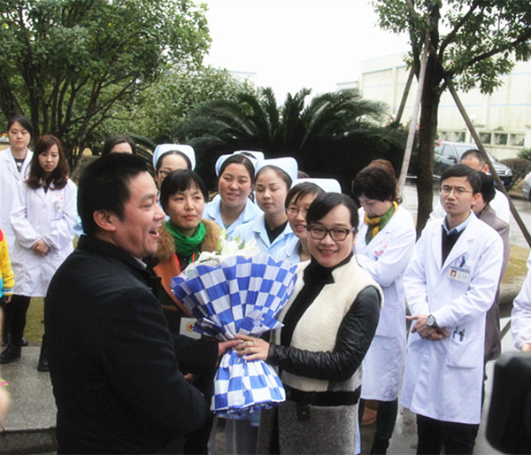 歡送會上,舟山市紅十字會秘書長龔青云、普陀區(qū)紅十字會常務(wù)副會長周艷,海氏集團(tuán)總經(jīng)理焦忠偉,廣安醫(yī)院院長郭維杰及眾多醫(yī)護(hù)人員紛紛出席,在歡送她的同時,也表達(dá)了對她的敬仰之情。周艷副會長表示,造血干細(xì)胞捐獻(xiàn)是一項(xiàng)無限光榮的事跡,我們要感謝她的無私奉獻(xiàn)精神。龔青云秘書長向應(yīng)娜獻(xiàn)上了一束美麗的鮮花,表示她的心靈和鮮花一樣美麗。