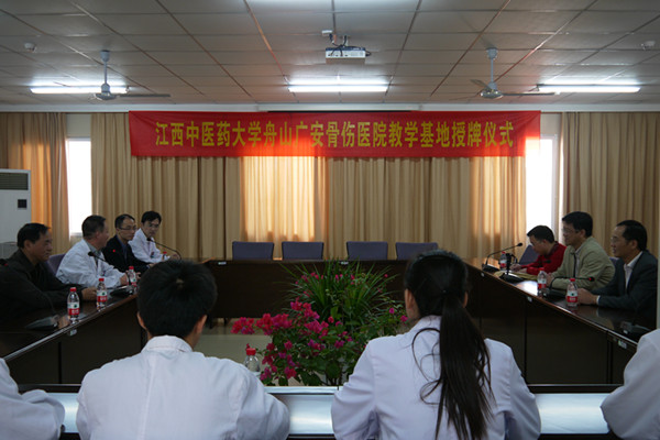 11月6日,江西中醫(yī)藥大學(xué)紀(jì)委書(shū)記劉青一行三人來(lái)我院參觀交流。雙方就醫(yī)院基本情況、中醫(yī)藥特色優(yōu)勢(shì)以及實(shí)習(xí)生學(xué)習(xí)生活情況進(jìn)行了座談。劉書(shū)記對(duì)我院實(shí)習(xí)生教學(xué)工作給予了肯定及感謝,并對(duì)學(xué)校與教學(xué)基地聯(lián)系交流等問(wèn)題提出了建議。最后雙方負(fù)責(zé)人為“江西中醫(yī)藥大學(xué)教學(xué)醫(yī)院”揭牌。
