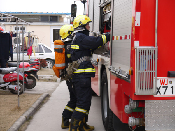 消防員做好開展消防演習(xí)的準(zhǔn)備