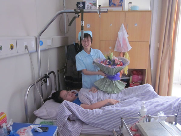 護(hù)士長吳冰冰手捧鮮花送給病人
