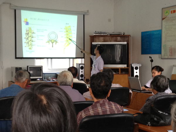 2012年9月19日下午2點舟山廣安骨傷醫(yī)院醫(yī)護(hù)人員前往紅旗社區(qū),為當(dāng)?shù)鼐用襁M(jìn)行有關(guān)骨質(zhì)疏松癥、頸椎病、腰腿痛等知識的講座,講座持續(xù)了一個小時左右。在講座結(jié)束后醫(yī)護(hù)人員還為當(dāng)?shù)鼐用衩赓M進(jìn)行了骨密度測試,特別是老年人,提早讓他們知道自己的身體狀況,有骨質(zhì)疏松的提早治療。