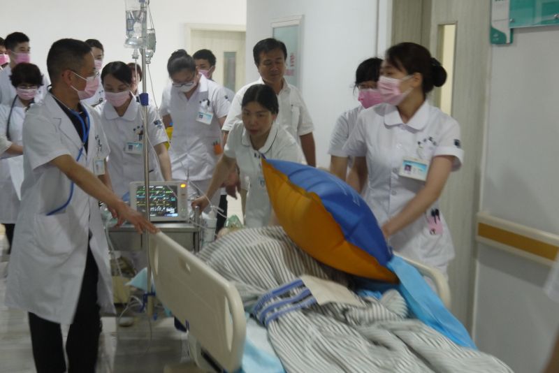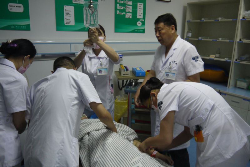 現(xiàn)場(chǎng)負(fù)責(zé)救治指揮的門(mén)急診方光波主任一一指導(dǎo)搶救工作,虞晉卿主任、醫(yī)教科張海萍副主任負(fù)責(zé)物資調(diào)配、床位預(yù)留、血液供應(yīng)以及全面協(xié)調(diào)工作,護(hù)理部應(yīng)娜主任對(duì)門(mén)急診護(hù)士進(jìn)行三梯隊(duì)分工協(xié)調(diào),院感科趙娟娜主任對(duì)手衛(wèi)生、醫(yī)廢的收集、分類(lèi)、管理及個(gè)人防治進(jìn)行督導(dǎo),總務(wù)科李華主任對(duì)應(yīng)急處置進(jìn)行現(xiàn)場(chǎng)指導(dǎo)。5分鐘內(nèi)院內(nèi)各科室急救小組全部到位待命