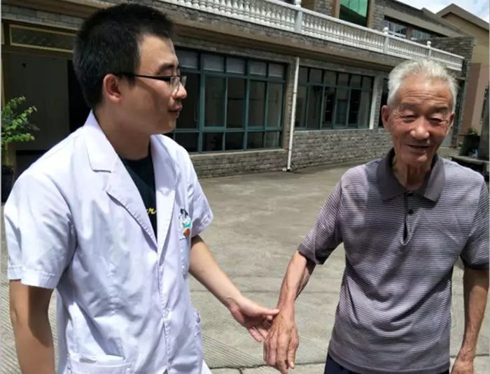 就在大家準備告辭時,張師傅一把拉住了醫(yī)生的手,隨后拄著雙拐下了床。