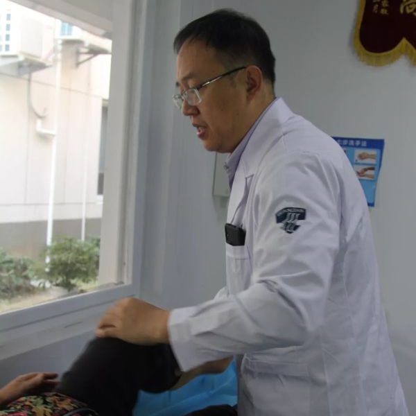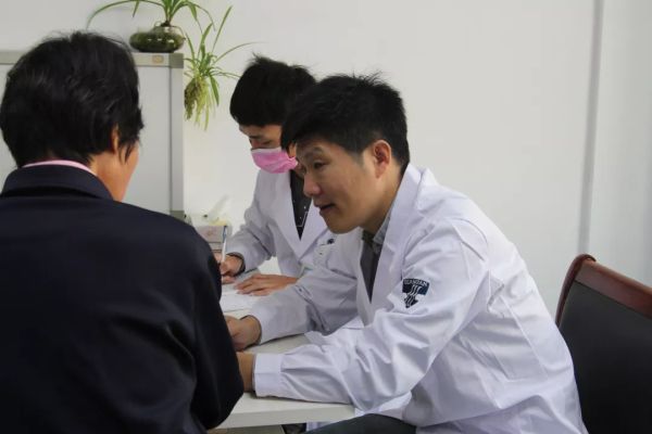 童先生夫婦先陪著父親來到脊柱科。劉鐵龍教授正在坐診,廣安醫(yī)院脊柱科主任戈才華在旁當助手。