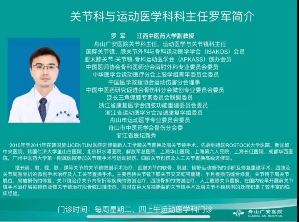 羅軍主任先后在韓國(guó)釜山Centum醫(yī)院、德國(guó)ROSTOCK大學(xué)醫(yī)院、韓國(guó)仁濟(jì)大學(xué)釜山白醫(yī)院、新加坡中央醫(yī)院作為訪問(wèn)醫(yī)師系統(tǒng)學(xué)習(xí)了關(guān)節(jié)外科及肩關(guān)節(jié)鏡的臨床診治規(guī)范和技術(shù)。從事運(yùn)動(dòng)醫(yī)學(xué)和關(guān)節(jié)外科工作十余年期間,不斷提高醫(yī)療業(yè)務(wù)水平,積累了豐富的臨床手術(shù)經(jīng)驗(yàn)。該外國(guó)友人手術(shù)的順利成功進(jìn)行,標(biāo)志我科醫(yī)療業(yè)務(wù)服務(wù)水平能滿足轄區(qū)人民及涉外醫(yī)療服務(wù)的要求。