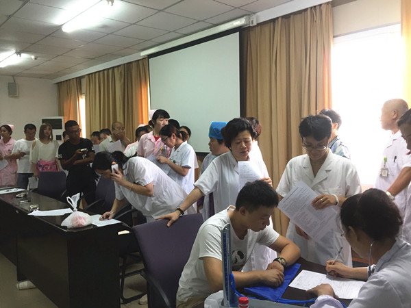 下午1點30分,醫(yī)院的大會議室里早早地排起了長隊。許多還在工作崗位上的醫(yī)生護士在完成手頭工作的交接后就匆匆趕來,大家紛紛表示:獻血是好事,不僅服務社會,還有利于自身的身體健康。很多老百姓對獻血有誤解,認為這會損害自己的身體健康,我們醫(yī)護人員要起到先鋒模范作用。