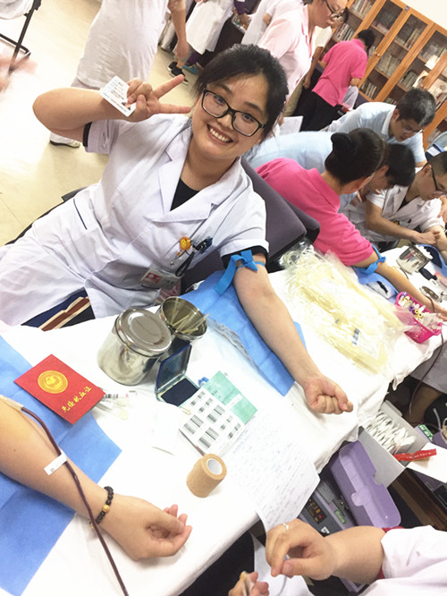 醫(yī)??浦魅斡嘈【矃⒓恿舜舜潍I血,她說:獻血是每個公民應盡的責任和義務,也是回報社會的實際行動。獻血后同志們都放棄休息,堅持上班,這種無私奉獻、助人為樂的精神讓人肅然起敬。