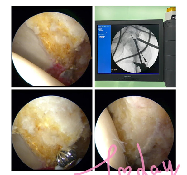 2月21日,經(jīng)過周密的術(shù)前準(zhǔn)備,羅軍帶領(lǐng)手術(shù)團(tuán)隊(duì)為余大伯開展髖關(guān)節(jié)鏡手術(shù)。術(shù)中,完成了髖關(guān)節(jié)鏡下探查清理、頭頸成形術(shù),髖關(guān)節(jié)鏡下清理術(shù),順利去除了髖關(guān)節(jié)撞擊征及盂唇破裂等病灶,并聯(lián)合運(yùn)用富血小板血漿技術(shù)治療患者的股骨頭壞死。