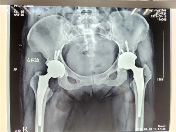 2017年5月,在朋友的建議下,洪女士來到我院,經(jīng)CT診斷雙側股骨頭無菌性壞死。便在危立軍副院長的建議下,做了左髖關節(jié)置換術。術后,洪女士恢復良好。