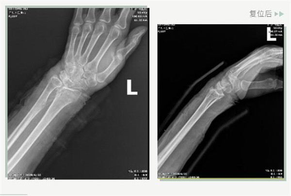25日當(dāng)天,莊阿婆來(lái)到危立軍副院長(zhǎng)門(mén)診,經(jīng)拍片顯示,莊阿婆左橈骨遠(yuǎn)端粉碎性骨折,左髂骨至髖臼后緣及恥骨下支骨折??紤]到莊阿婆年紀(jì)較大,基礎(chǔ)病較多,難以經(jīng)受手術(shù)創(chuàng)傷,傳統(tǒng)手法復(fù)位更為合適。推、拽、按、捺……經(jīng)過(guò)危立軍副院長(zhǎng)一番手法復(fù)位后,再次拍片顯示莊阿婆橈骨遠(yuǎn)端骨折端復(fù)位位置良好,莊阿婆及其家人感到非常滿意。