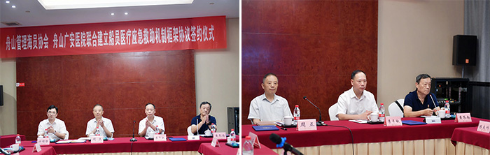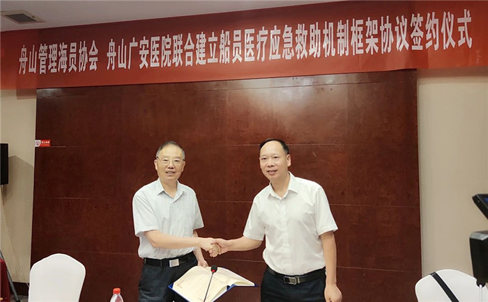 在與舟山市海員協(xié)會(huì)《聯(lián)合建立船員醫(yī)療應(yīng)急救助機(jī)制框架協(xié)議》簽約儀式結(jié)束后,我院還與各海運(yùn)企業(yè)簽訂了《船舶(船員)醫(yī)療應(yīng)急救助協(xié)議》,今后若這些海運(yùn)企業(yè)船員在海上突發(fā)疾病、意外傷害等,醫(yī)院將第一時(shí)間進(jìn)行遠(yuǎn)程救助指導(dǎo),更好保障船員健康和生命安全。