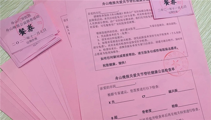 為了更好地關(guān)愛舟山市民健康,幫助市民發(fā)現(xiàn)因疼痛或行動不便引起的關(guān)節(jié)脊柱疾病,盡早恢復(fù)健康生活,《舟山晚報(bào)》和舟山廣安醫(yī)院聯(lián)合推出關(guān)愛市民關(guān)節(jié)脊柱健康公益篩查項(xiàng)目。報(bào)名時間自10月20日至10月31日,先后有上百名市民報(bào)名。因報(bào)名人數(shù)較多,只得分成3批開展篩查。篩查時間分別是11月6日、7日、13日。