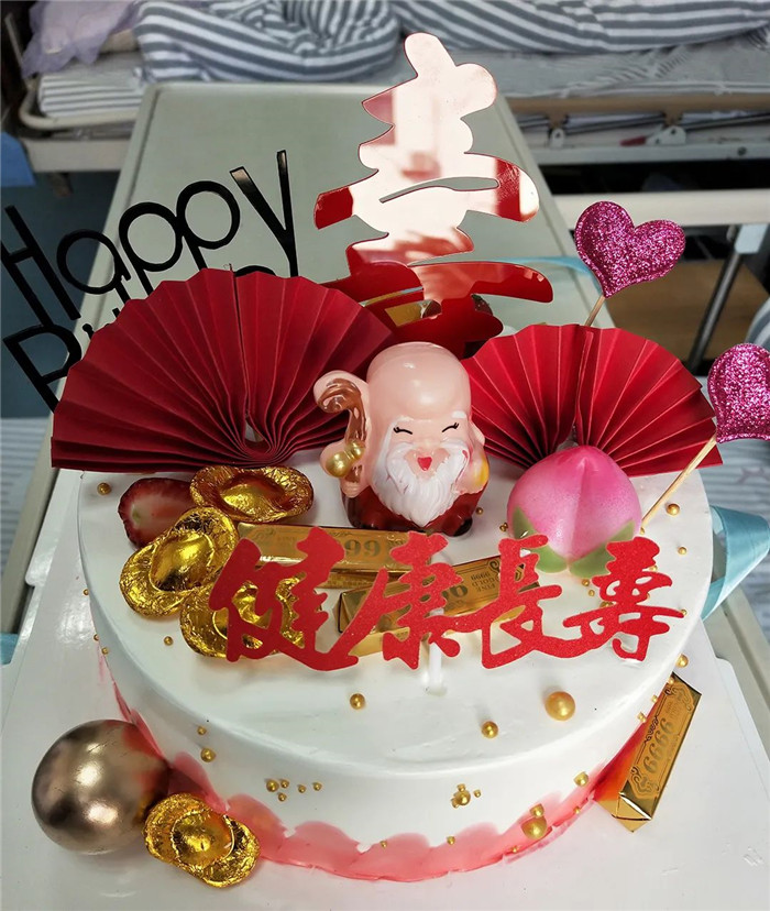 據(jù)護(hù)士長胡飛燕介紹,在無意中獲知當(dāng)天是陳阿公79歲生日,而在舟山,上了年紀(jì)的人過生日都有“滿九”的習(xí)俗。所以,病區(qū)一大早就訂制了蛋糕,為老人祝壽。