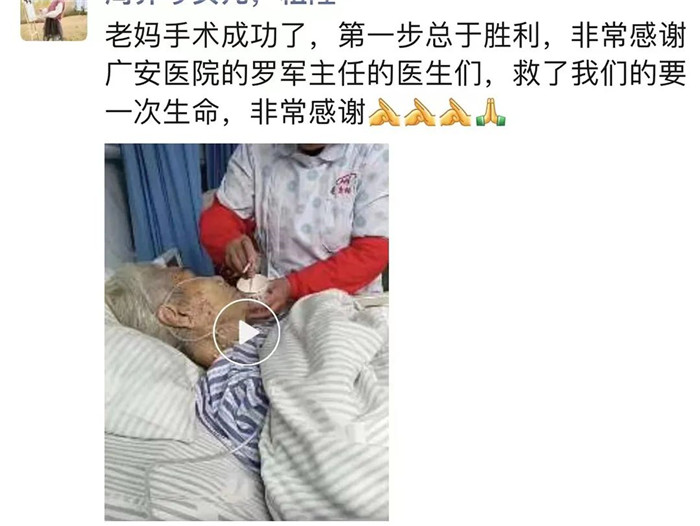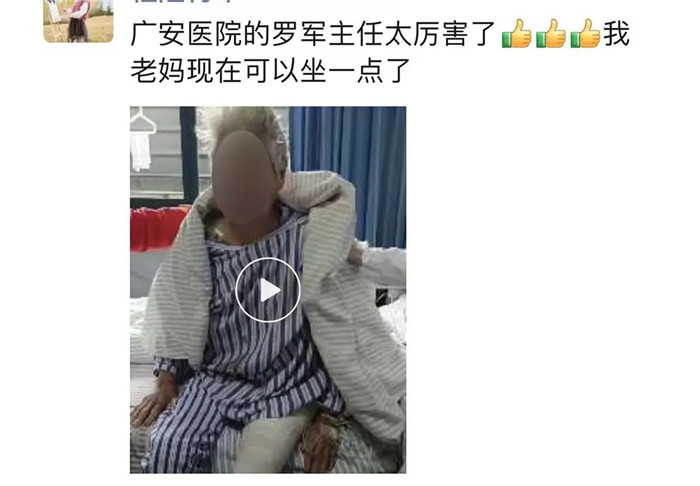 對(duì)于母親的恢復(fù)情況,患者女兒表示由衷的欣慰及感謝,母親的一點(diǎn)點(diǎn)進(jìn)步與改善,都在“曬”在朋友圈。為表示感激,她特地定制一面錦旗送予羅軍主任團(tuán)隊(duì),以感謝他們精湛的醫(yī)技和貼心的照顧。