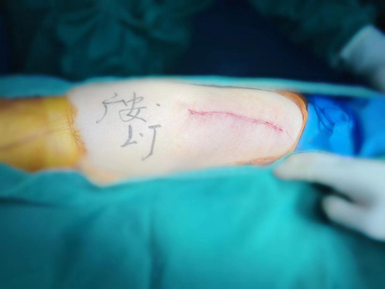 術(shù)中,醫(yī)生在患者髂前上棘外側(cè)切開約8cm長的切口,小心翼翼地利用闊筋膜張肌與縫匠肌之間的間隙露出髖關(guān)節(jié)。經(jīng)過一番精細(xì)、高難度的操作,成功植入人工髖關(guān)節(jié)組件,以取代受損的股骨頭和髖臼。由于手術(shù)切口小,肌肉組織未受損,鄭阿姨恢復(fù)很快,術(shù)后第1天就能下床活動(dòng)。