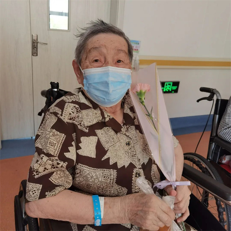 醫(yī)護(hù)人員將可口美味的節(jié)日小蛋糕和鮮花遞到張爺爺?shù)氖稚?,老人開心的笑成了一條直線。張爺爺說:“這蛋糕真好吃,住在這里真好,家的味道”!小小的蛋糕和鮮花包含深深的祝福,祝福天下老人幸福、健康、平安,快樂。