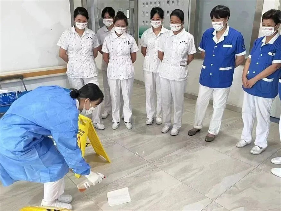為了妥善處理這類比較常見的突發(fā)事件,進一步提高我院醫(yī)務人員對血液、體液濺灑地面的應急處理能力,最大限度降低污染造成的危害,保障醫(yī)療安全,8月24日,感染管理科、護理部聯(lián)合各臨床及相關重點科室組織開展了血液、體液濺灑意外事件應急處置演練。