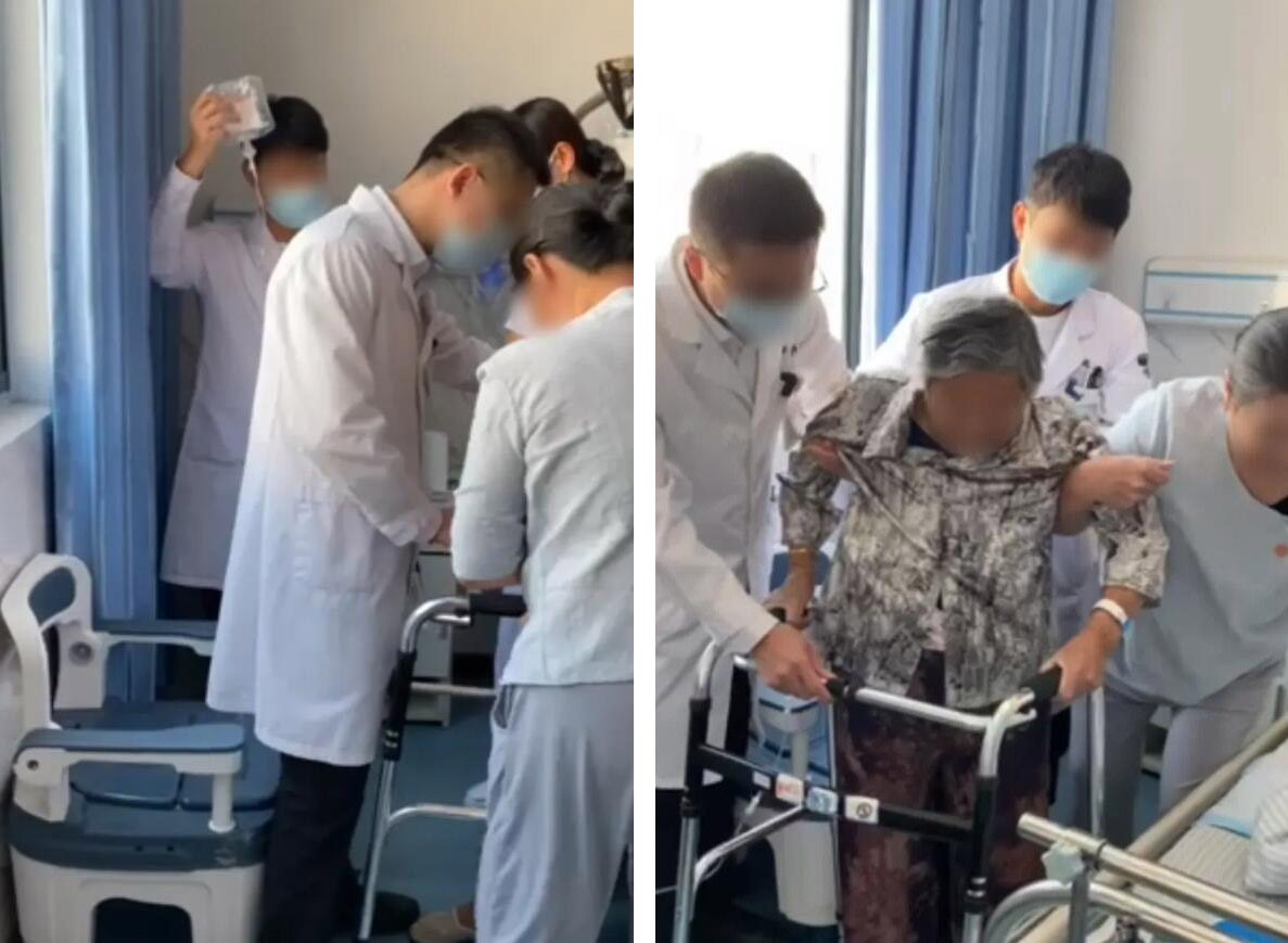 術(shù)后第二天,俞奶奶就在醫(yī)護(hù)人員指導(dǎo)下開始進(jìn)行康復(fù)鍛煉。一周后,她已能自己扶拐下床活動(dòng)。如今,她正朝著獨(dú)立行走的目標(biāo)穩(wěn)步康復(fù)。