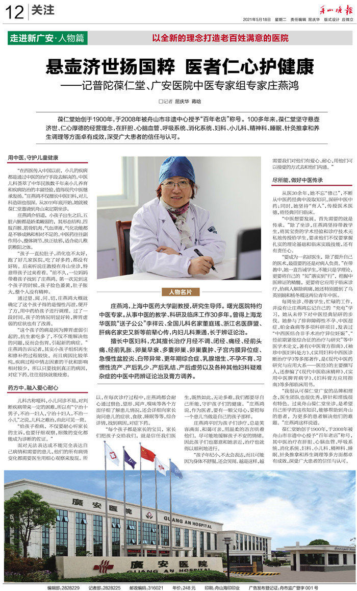 廣安人懷揣著對于醫(yī)療的敬畏和對舟山人的大愛,將以更加昂揚的姿態(tài)和海納百川的胸懷,不斷把學(xué)科建設(shè)和醫(yī)療技術(shù)水平推向更高的境界,服務(wù)舟山、造福社會。
