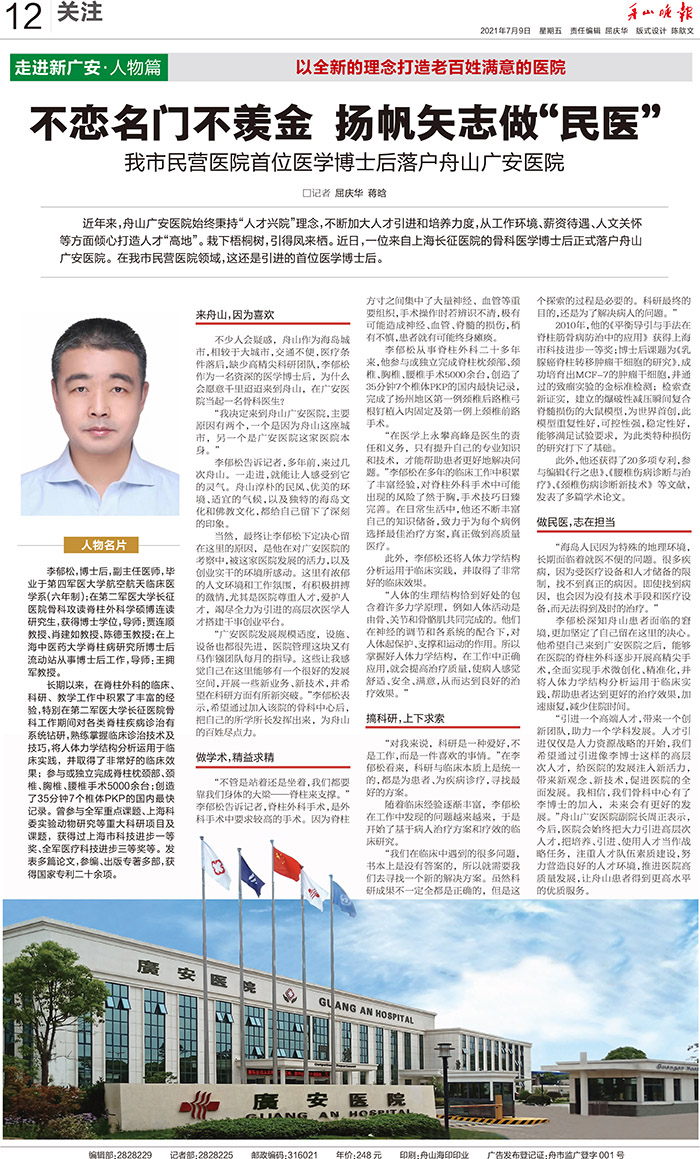 廣安人懷揣著對于醫(yī)療的敬畏和對舟山人的大愛,將以更加昂揚的姿態(tài)和海納百川的胸懷,不斷把學(xué)科建設(shè)和醫(yī)療技術(shù)水平推向更高的境界,服務(wù)舟山、造福社會。