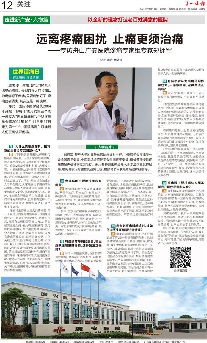 廣安人懷揣著對于醫(yī)療的敬畏和對舟山人的大愛,將以更加昂揚(yáng)的姿態(tài)和海納百川的胸懷,不斷把學(xué)科建設(shè)和醫(yī)療技術(shù)水平推向更高的境界,服務(wù)舟山、造福社會。