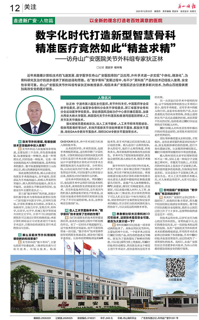 數(shù)字化時代打造新型智慧骨科 精準醫(yī)療竟然如此“精益求精”——訪舟山廣安醫(yī)院關節(jié)外科組專家狄正林