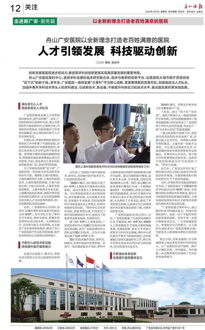 廣安人懷揣著對于醫(yī)療的敬畏和對舟山人的大愛,將以更加昂揚的姿態(tài)和海納百川的胸懷,不斷把學科建設和醫(yī)療技術(shù)水平推向更高的境界,服務舟山、造福社會。