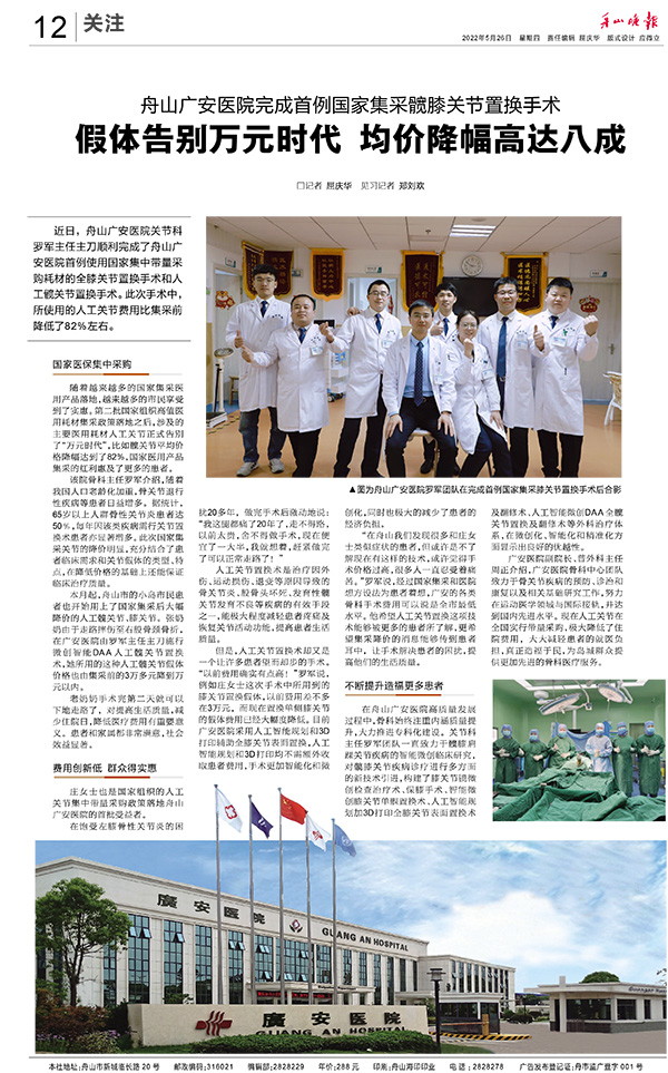 廣安人懷揣著對于醫(yī)療的敬畏和對舟山人的大愛,將以更加昂揚的姿態(tài)和海納百川的胸懷,不斷把學(xué)科建設(shè)和醫(yī)療技術(shù)水平推向更高的境界,服務(wù)舟山、造福社會。