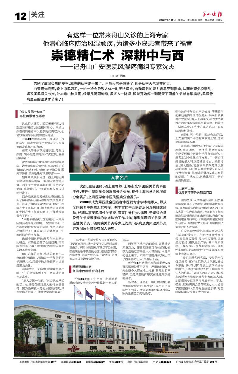 廣安人懷揣著對(duì)于醫(yī)療的敬畏和對(duì)舟山人的大愛,將以更加昂揚(yáng)的姿態(tài)和海納百川的胸懷,不斷把學(xué)科建設(shè)和醫(yī)療技術(shù)水平推向更高的境界,服務(wù)舟山、造福社會(huì)。