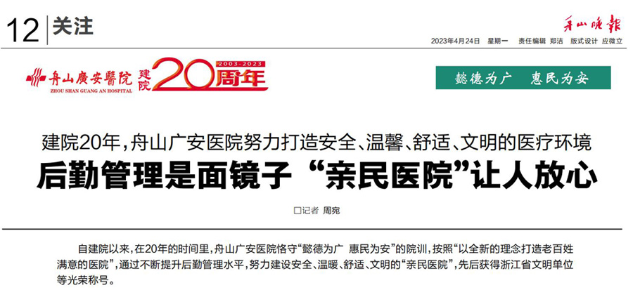 廣安人懷揣著對于醫(yī)療的敬畏和對舟山人的大愛,將以更加昂揚(yáng)的姿態(tài)和海納百川的胸懷,不斷把學(xué)科建設(shè)和醫(yī)療技術(shù)水平推向更高的境界,服務(wù)舟山、造福社會。