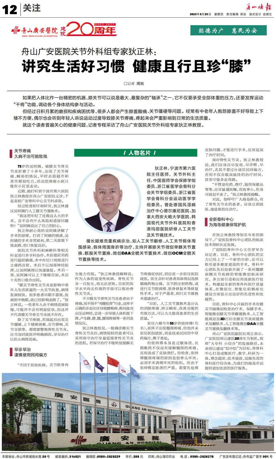 廣安人懷揣著對于醫(yī)療的敬畏和對舟山人的大愛,將以更加昂揚的姿態(tài)和海納百川的胸懷,不斷把學(xué)科建設(shè)和醫(yī)療技術(shù)水平推向更高的境界,服務(wù)舟山、造福社會。